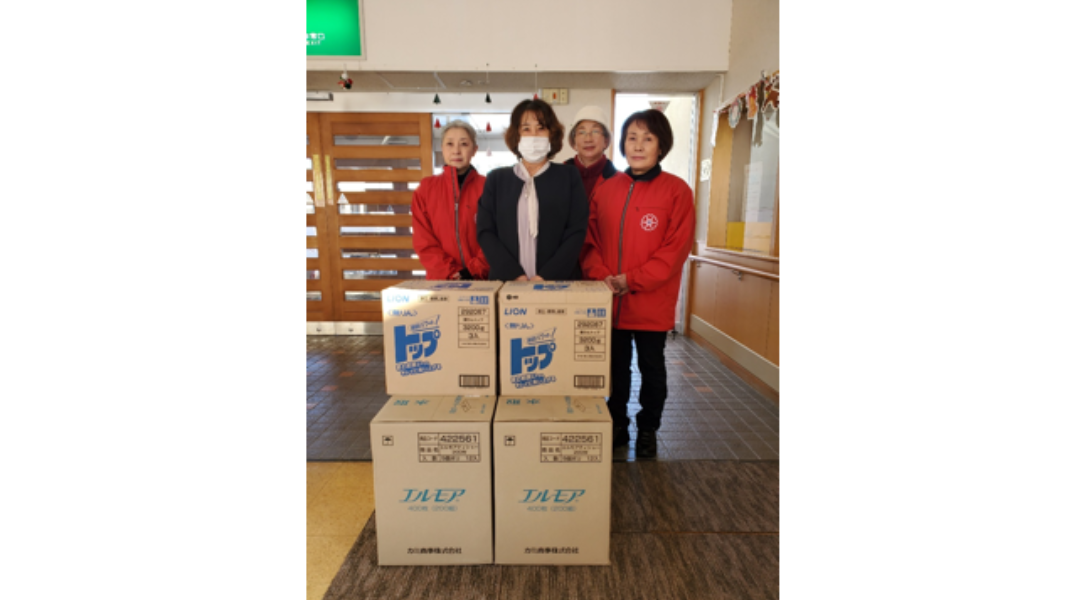 浜中町にある介護老人福祉施設「ハイツ・野いちご」へ箱ティッシュと洗濯用洗剤を寄贈いたしました。